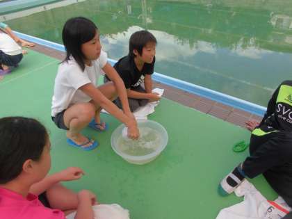 今週、組体操の練習でよごれた体操服を手洗いしました。