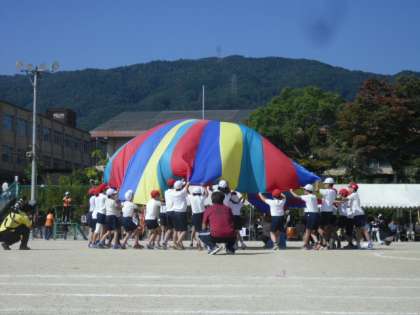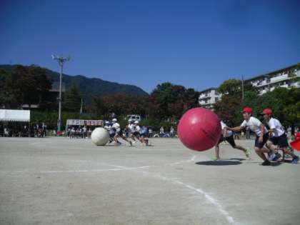 澄み渡る青空の下,運動会が開催されました。子供たちは元気いっぱい競技に演技に頑張っていました。