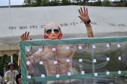 壁にあいた穴を防ぐ岩を獲得するため,白熱の騎馬戦が繰り広げられました。