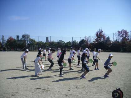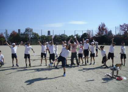 創作エイサーの学習をしています。まずは音楽を聴きながら,沖縄のイメージを伝え合いました。海・島・風・波・星空・大地・祭り・掛け声・ゴーヤ・暑いなどいろいろ出てきました。そのイメージを動きに表してみると?・・・はじめは恥ずかしそうにしていましたが,ノリノリに踊り出す子につられ,みんなで楽しく踊れるようになりました。一人一人の動きをみんなに伝え,振り付けが全て完成!今日は通しで踊ってみました。最後の「ヨイサー!」の掛け声で楽しさが全身ではじけました。