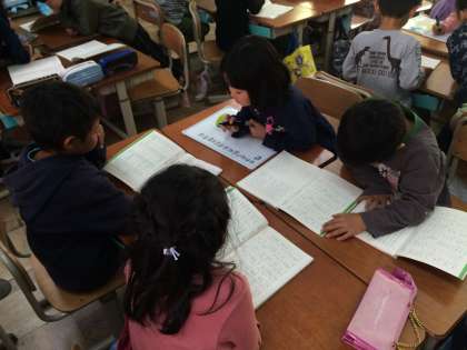 国語の時間に漢字をたくさん覚えるために少し時間を使って,同じ部分を持つ漢字探しをしました。
