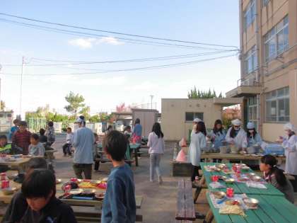 6年 外で給食を食べました!