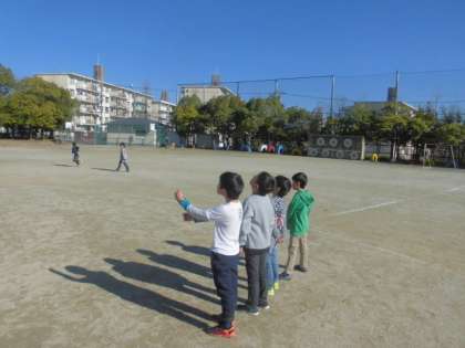 一人の児童が,「かげおくりができるかな。」とつぶやくと一人,二人と集まってかげおくりをしました。