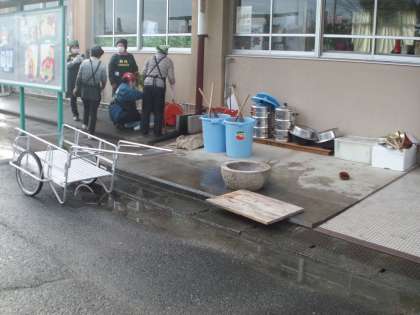 2月13日 おはようございます。今日は少年補導の方々による餅つき大会です。今は準備をしておられます。午前10時から行いますので,参加してください。
