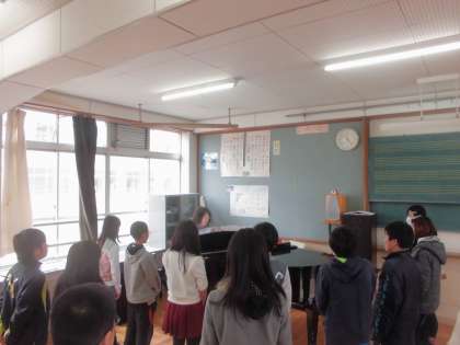 卒業式の歌練習は、1年生まなび先生の山下先生にもお世話になっています。