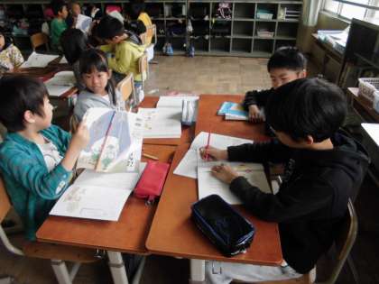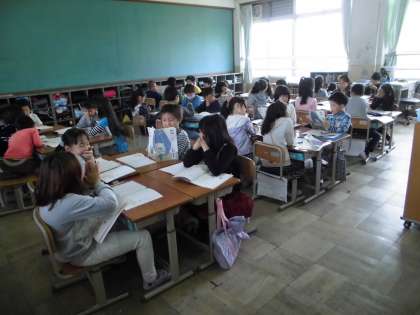 教室での学習がスタートしました。国語では,詩の音読をしました。