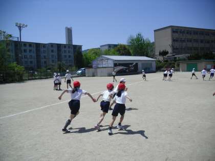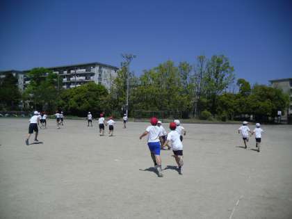 50メートル走を計った後に手つなぎ鬼をしました。