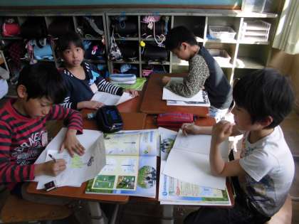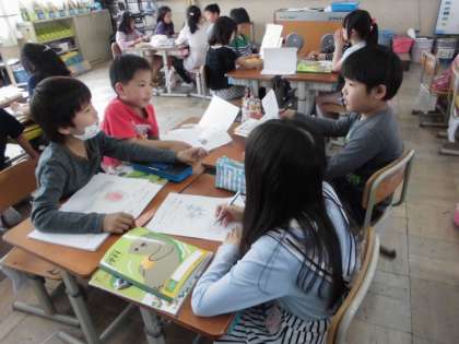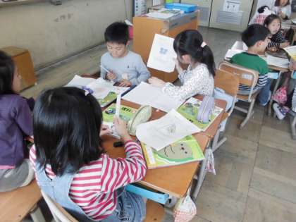 理科の自然観察で見つけた生き物を紹介し合いました。