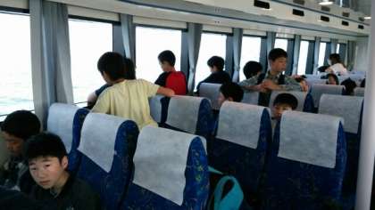 朝ごはんをおいしく頂いた後,日間賀島を出発しました。今はリトルワールドに向かうバスの中です。