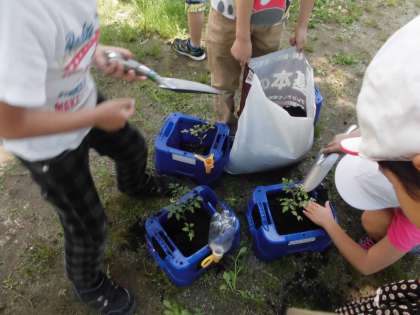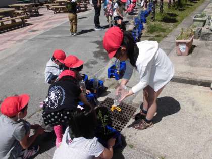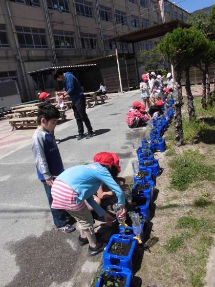 生活科の学習で,トマトのなえを植えました。
