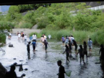 4年生は,総合的な学習の「水と自然について考える」というテーマで,今日は小畑川にすんでいる生き物や川の様子を調べに行きました。見つけられた生き物の種類はそんなに多くはなかったのですが,かに・小エビ・小魚・卵(魚?)・ヤゴなど自分で見つけたことに大興奮でした。ぜひ,もう一度違う場所でどんな生き物が生息しているのか調べてみたいと意欲をもやしている4年生です。