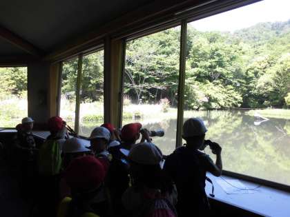 野鳥遊園では,グループごとに分かれて野鳥の観察,グループごとの写真撮影,