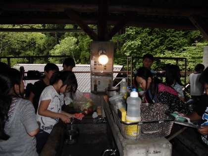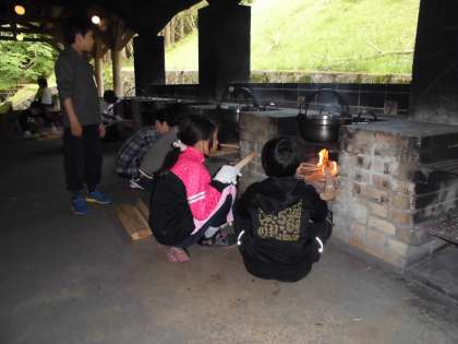 火の係、調理係等分担し、班で協力して作っていました。