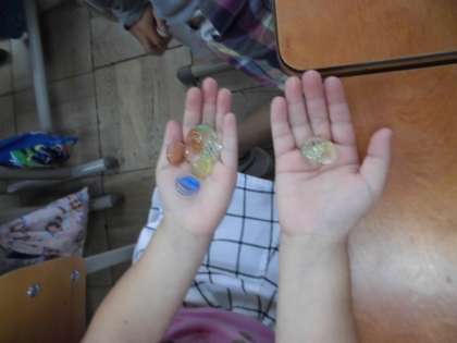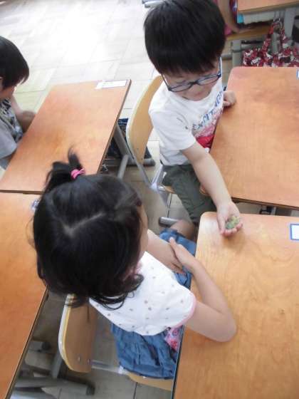 ペアでおはじきを使って楽しみながら学習しました。