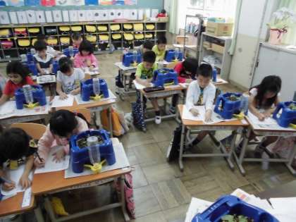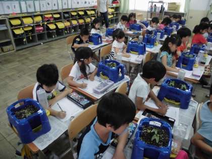 先日植えたあさがおの芽がでました。子どもたち熱心に観察し丁寧に記録をかいていました。