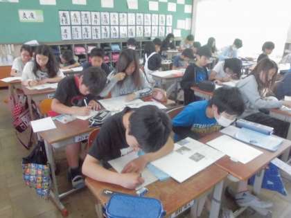 「夕食は地引網でとれた魚を使って,おさしみやからあげなどがありました。とてもおいしく,何度もおかわりをしました。」「夜はプラネタリウムで教えてもらった星をみんなで探してみた。」「ヨーロッパサーカスではぼくは男の人がジャグリングをしたのが一番すごいなぁと思いました。」「リトルワールドは本当に海外旅行をしているように思えた。」「ピースをつなげようと,お互いに協力し,助け合えた。」「海からホテルに向かう道から見た景色はすごくきれいだった。」「同じ部屋の人たちともトランプしたりしていてたくさん話せた。」「今まであまりしゃべらなかった人といっぱいしゃべれて仲良くなれた。」「修学旅行最終日は,お互いに協力しあえるメンバーに変わっていた。」「たった2日間だけなのに,こんなにいい思い出を作れた。」