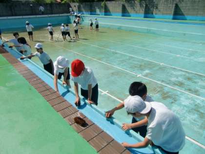 6年生は、全校のためにプール清掃をがんばってくれました。