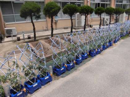 トマトがいつの間にか大きくなり,ぐんぐん背が伸びていました。
