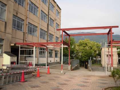 東側の渡り廊下がきれいになりました。今は西側の工事中です。雨漏りもなくなり,明るくなるだろうと思います。