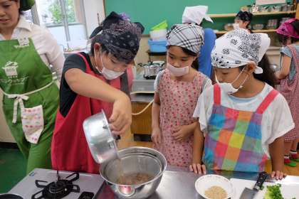 班で協力して,「ご飯・みそ汁・ふりかけ」を作ることができました!とても手際よくできていました。