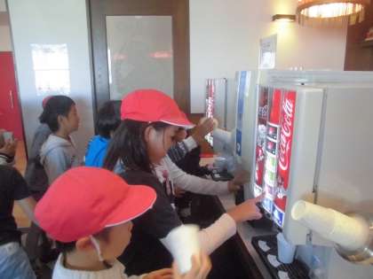 社会見学で近畿コカ・コーラ京都工場に行きました。前日に社会の学習で,商品のでき方を予想して,実際の見学となりました。3Dの映像をみたり,ジュースの試飲をしたりと,子どもたちにとってはとても楽しい見学となったようです。実際に工場内の生産ラインを見た時には,大量の商品がベルトコンベアで流れてくる様子に驚き,興味深く見学していました。また,分かったことを熱心にメモしたり,「工場では何人の人が働いていますか?」などの質問をしたりと,しっかり学習ができました。見学の後は公園で楽しくお弁当タイム。青空のもとおいしくいただきました。