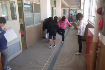 みんなで協力しながら,上手に距離を測定していました。
