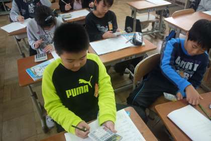 その後,自分の歩幅を利用して,運動場や教室の長さを考えました。