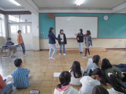 文化のつどいに向けて,場面ごとに分かれて練習を進めています。動きやセリフ,立ち位置など,「よりよくするにはどうすればいいか?」お互いに見合ってアドバイスし合いました。今後のバージョンアップが楽しみです!