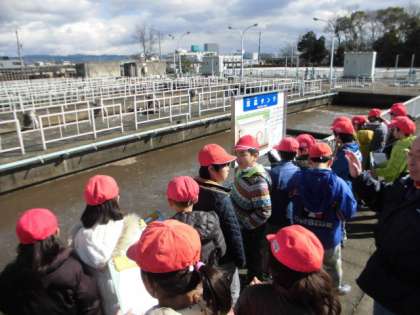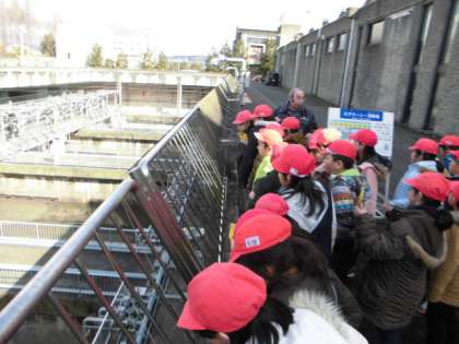 今日の午後からは,水環境保全センターへ社会見学に行きました。