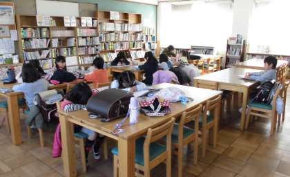 保護者の方が懇談会中,図書館で待っている子どもたちがいました。