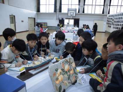 子どもたちは,船の模型の作品の精巧さに驚いていました。