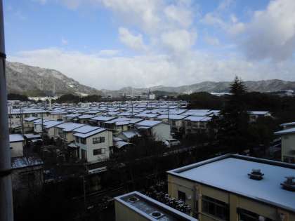 今朝は登校時に,雪がかなり降っていました。4階から見ると,校区のお家の屋根は雪景色でした。