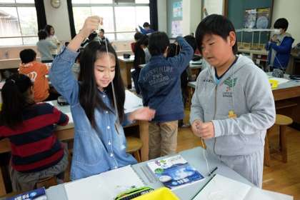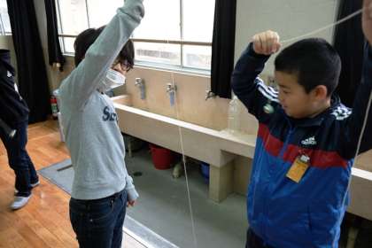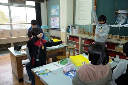 ふりこのひもの長さやおもりなどを変えて,動きを見ました。
