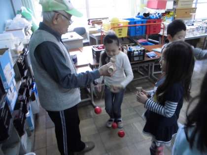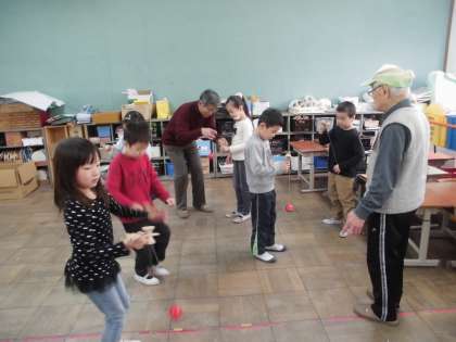 生活科の学習で,地域の方に昔遊びを教えていただきました。