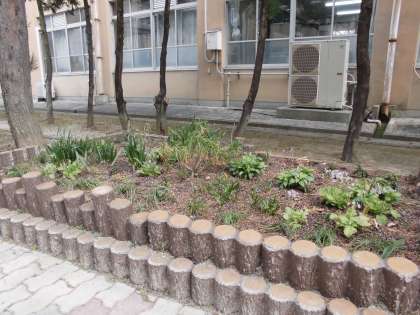 中庭の花壇の苗が,芽を出してきています。秋に地域の方に苗や種をいただき,植えてありました。暖かな春が近いことを感じさせてくれます。