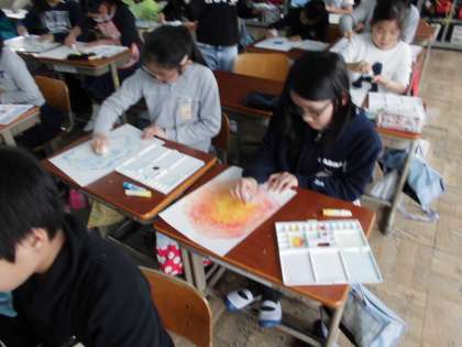 まずは,自分だけの世界に一つだけの花を描きました。完成したら,後ろに掲示したいと思います。