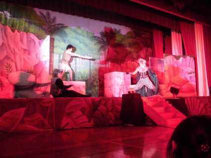 舞台以外も使った大迫力の劇で,子どもたちもお話に引き込まれている様子でした。