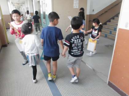 1年生を連れて,学校探検に行きました。