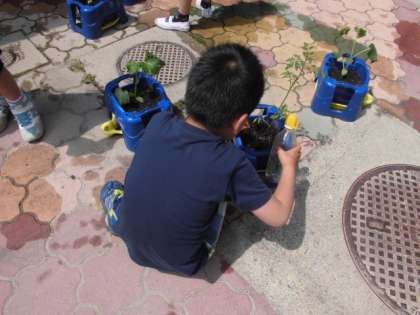 大事に育てたチューリップとお別れをして,野菜の苗を植えました。