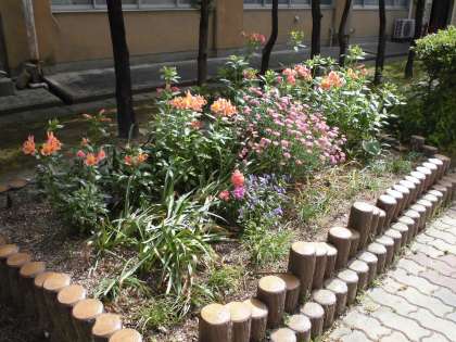同じ中庭の花壇も,色とりどりの花が真っ盛りです。