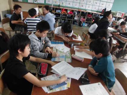 来週の修学旅行に向けて「明治村」「名古屋港水族館」「名古屋市科学館」の見学コースを班ごとに考えました。