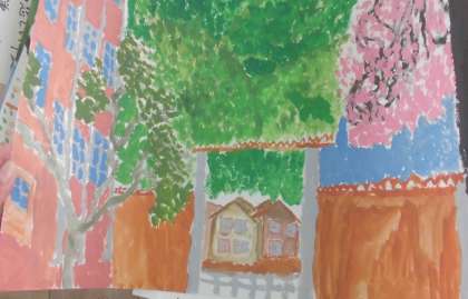 小学校生活最後の「春」!思い出に残る大切な春の風景を絵に残そうと取り組んできました。そしてついに完成!!サクラや草木,自然や風景を中心に描きました。写真の撮り方から,下書き,そして配色とすべてにこだわり完成させました。階段踊り場や教室に掲示しています。次回の休日参観でぜひご覧ください。