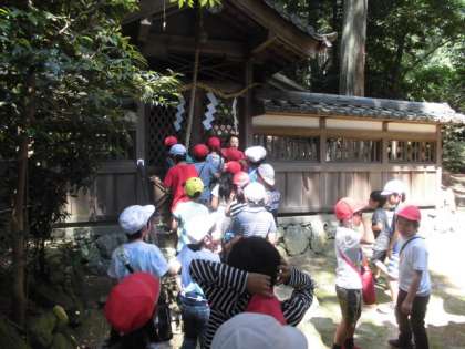坂道は2年生の小さな足にとっては少し大変でしたが,登りきって神社に着いたとき,景色を見ると疲れも一気にふっとびました。