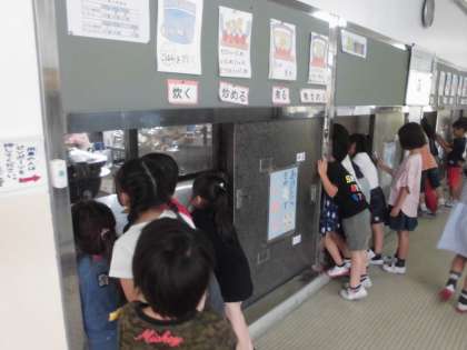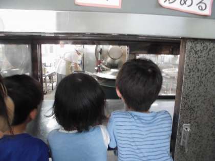 普段,見ることのできない調理の様子を見て,子どもたちは興味津々の様子でした。