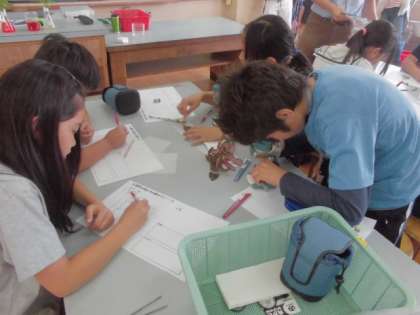 先日から準備していたホウセンカを使って,植物の成長と水との関わりについて調べました。色のついた水を使用しているので,ホウセンカの茎や葉のどこを水が通っているかがはっきりと分かりました。顕微鏡の使い方もずいぶんと上手になりました。