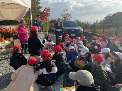総合的な学習の時間では大枝の柿について学習を進めてきました。大枝の柿が旬真っ盛りのタイミングで、農園の見学へ行かせていただけることとなり子どもたちも大喜び!たくさん質問をして、学びのある時間となりました。