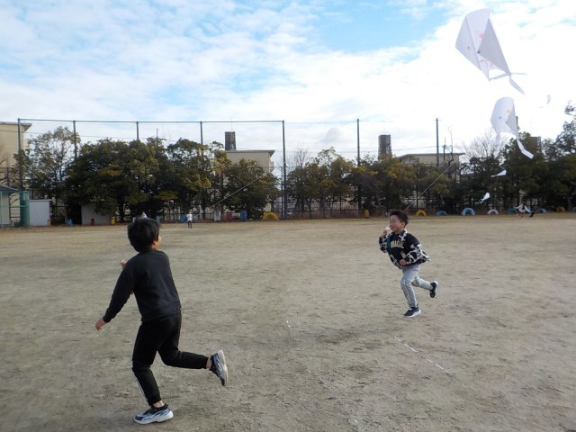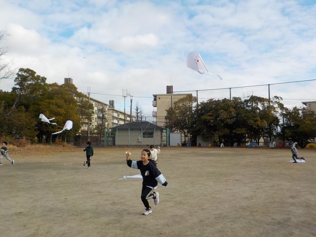生活科の学習でお正月遊びに取り組んでいます。新年最初はたこあげです。