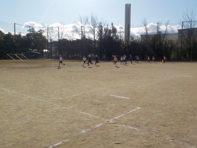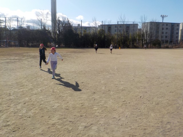 自分のペースで5分間走ります。初めての5分間はしんどかったようですが、頑張って走っていました。
