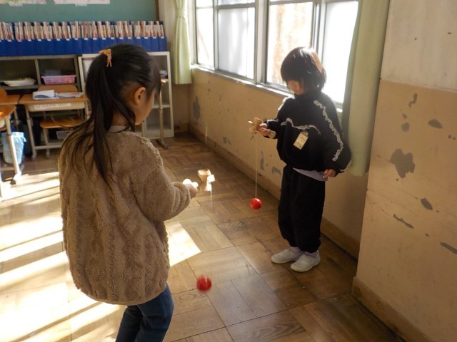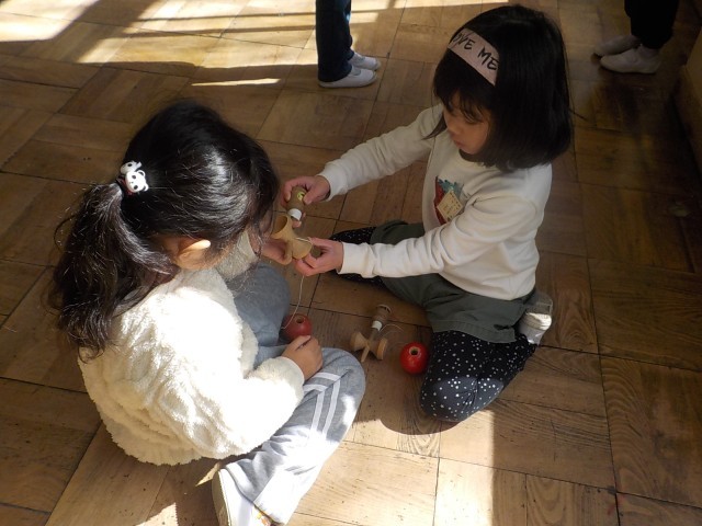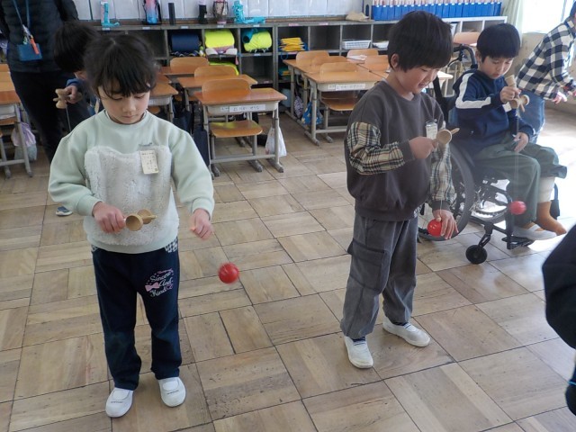 生活科でけん玉をしました。得意な子が優しく教える姿も見れました!