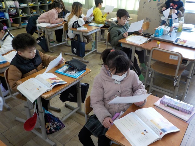 国語「すてきなところをつたえよう」の学習で友だちのすてきなところを手紙に書いて渡しました。その後、手紙をくれた友だちに返事の手紙を書きました。もらった手紙を嬉しそうに読んでいる姿は、とても微笑ましい光景でした。